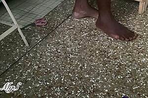 seductive ebony housewife gives pedicure teaser