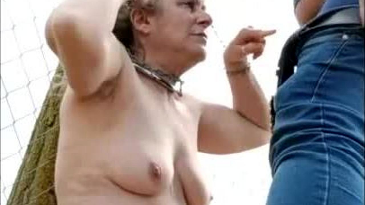 French Slave F Blowjob and Masturbation Orgasm Outdoors