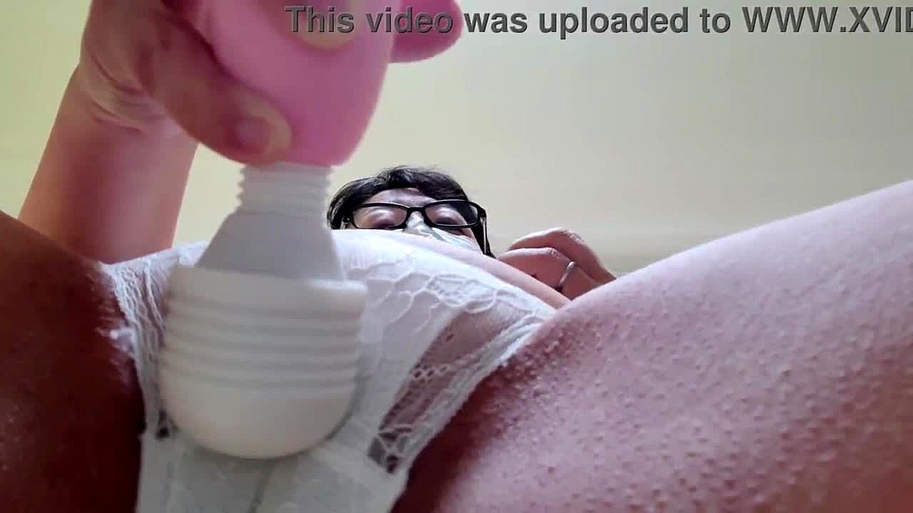 a married woman experiences deep pleasure during her standing masturbation session