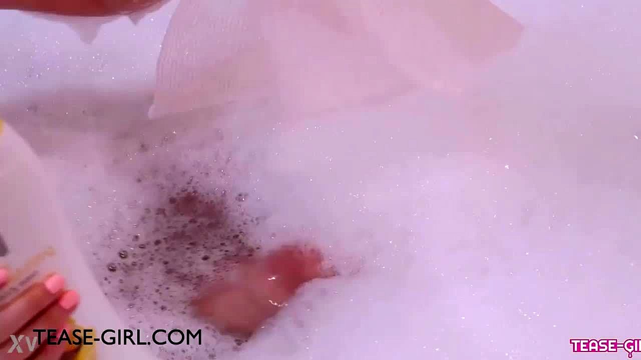 Tall skinny model relaxes in a sensual bath during photoshoot.