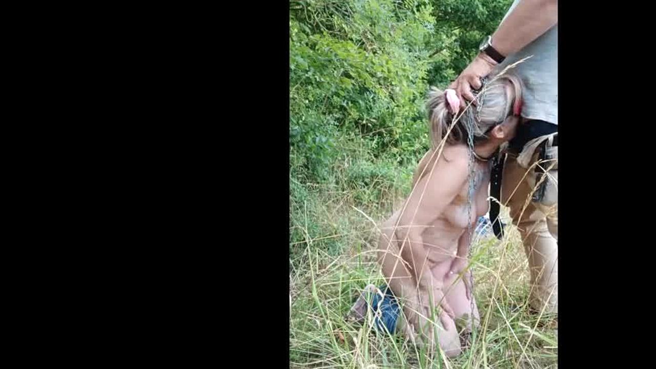 slave woman in forest dogging blowjob