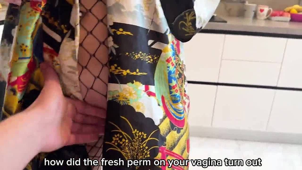 Big ass stepmom seduces stepson in kitchen with huge boner for wild fucking