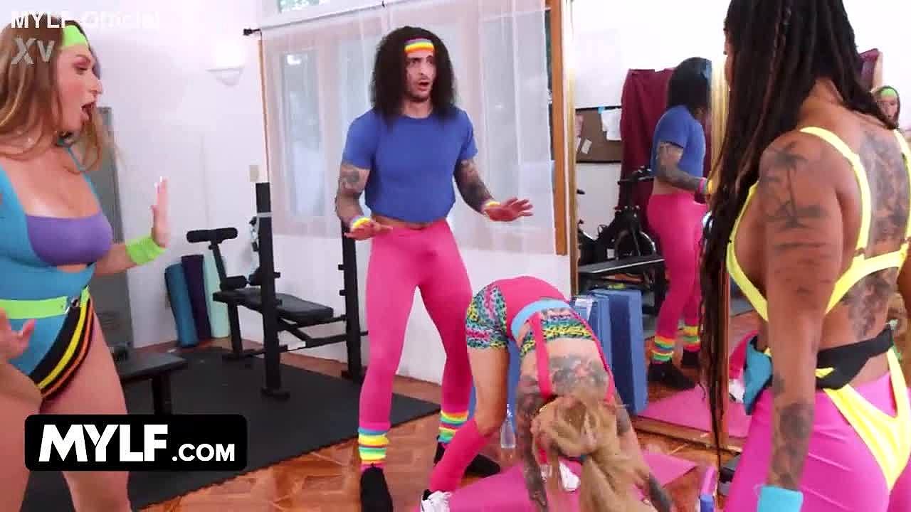Hungry Cougars In Retro Outfits Pounce On Hard Pervert For Gangbang Fucking At Gym With Pussy Action